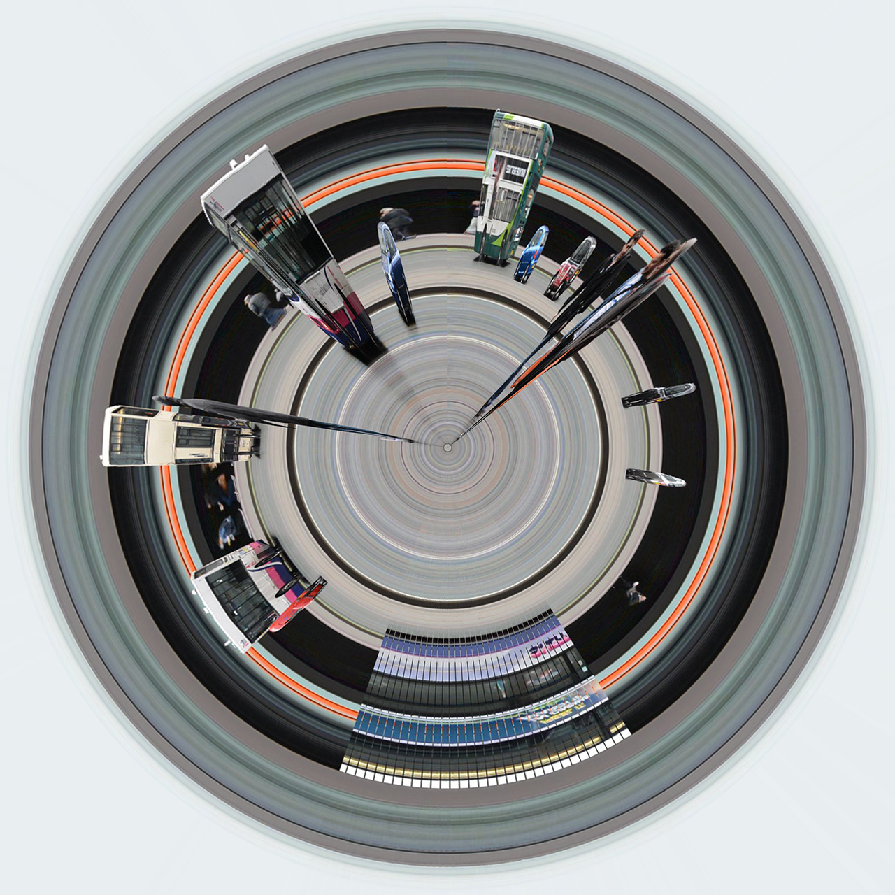 This is a similar scan displayed as a circular panorama. I am not sure of the effect here, it is a common method to display panoramas but does it get across the elements of the image such as time and motion? If anything this makes the image look more gimmicky, something I do not want.